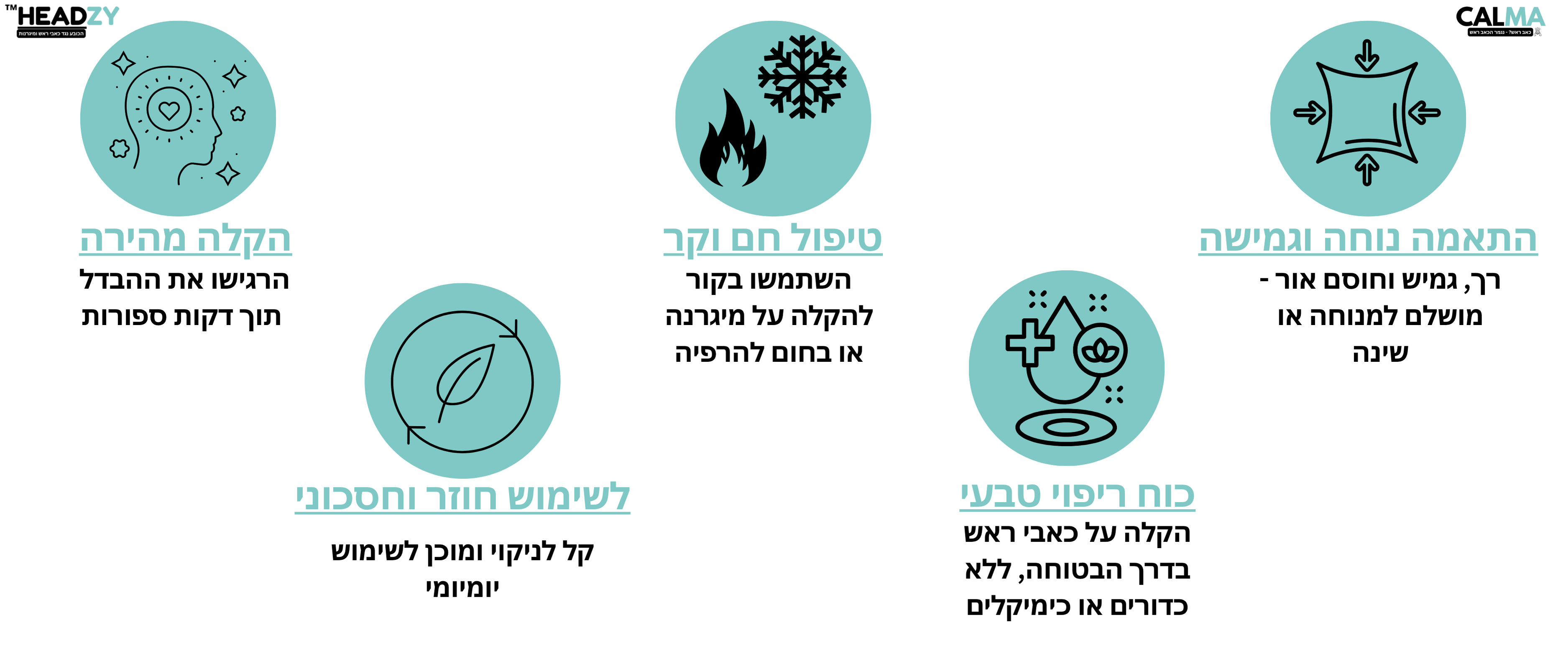 - פשוט מניחים אותו על הראש למספר דקות. ניתן לשים אותו במקרר/מקפיא לקירור, או לחמם בעדינות (בהתאם להנחיות) – ולהרגיש את ההקלה כמעט מידית.